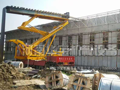 壓瓦機(jī)可以將彩鋼卷壓縮成型直接傳輸?shù)轿蓓斏?,該設(shè)備使用遙控操作的,360度旋轉(zhuǎn),可以舉升高度23米,可以載重18噸,升舉高度可以根據(jù)客戶的需求來(lái)制作的。